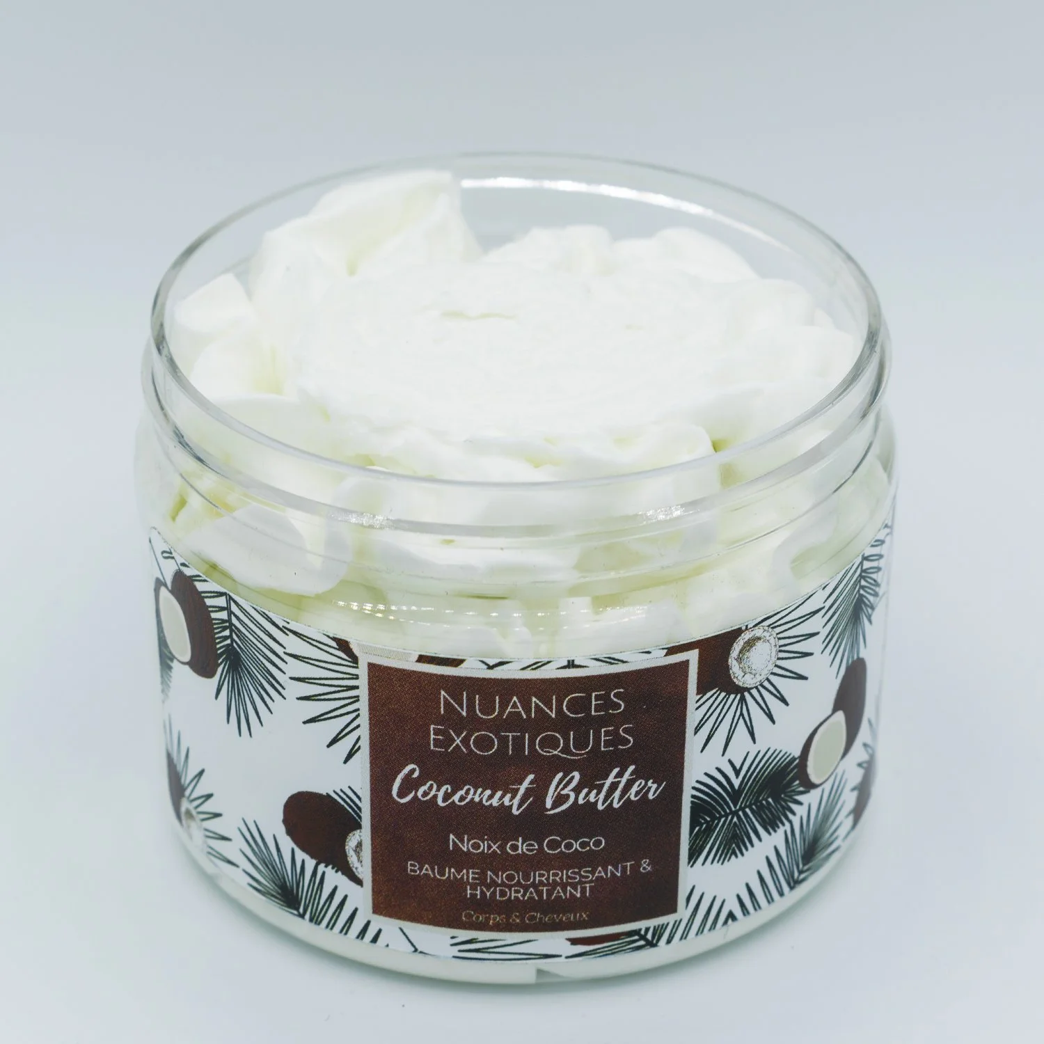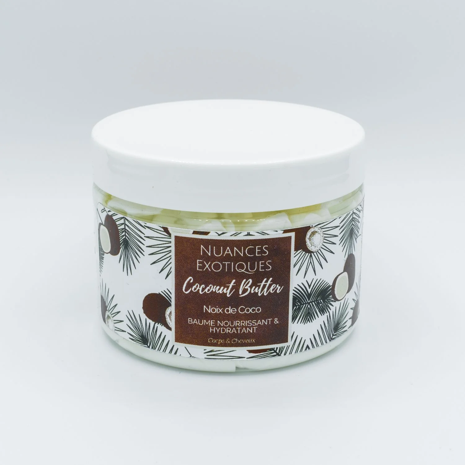 Le baume à la noix de coco pour le corps de Nuances exotiques avec sa texture crémeuse et fondante réparera et régénèrera la peau en lui redonnant son élasticité.